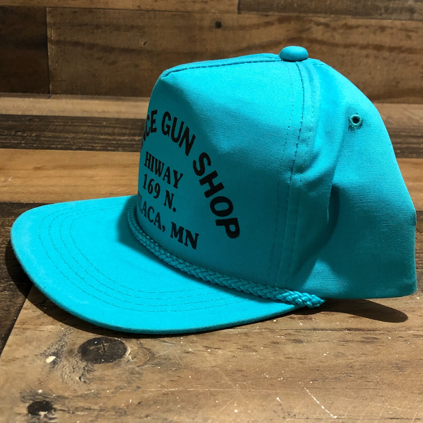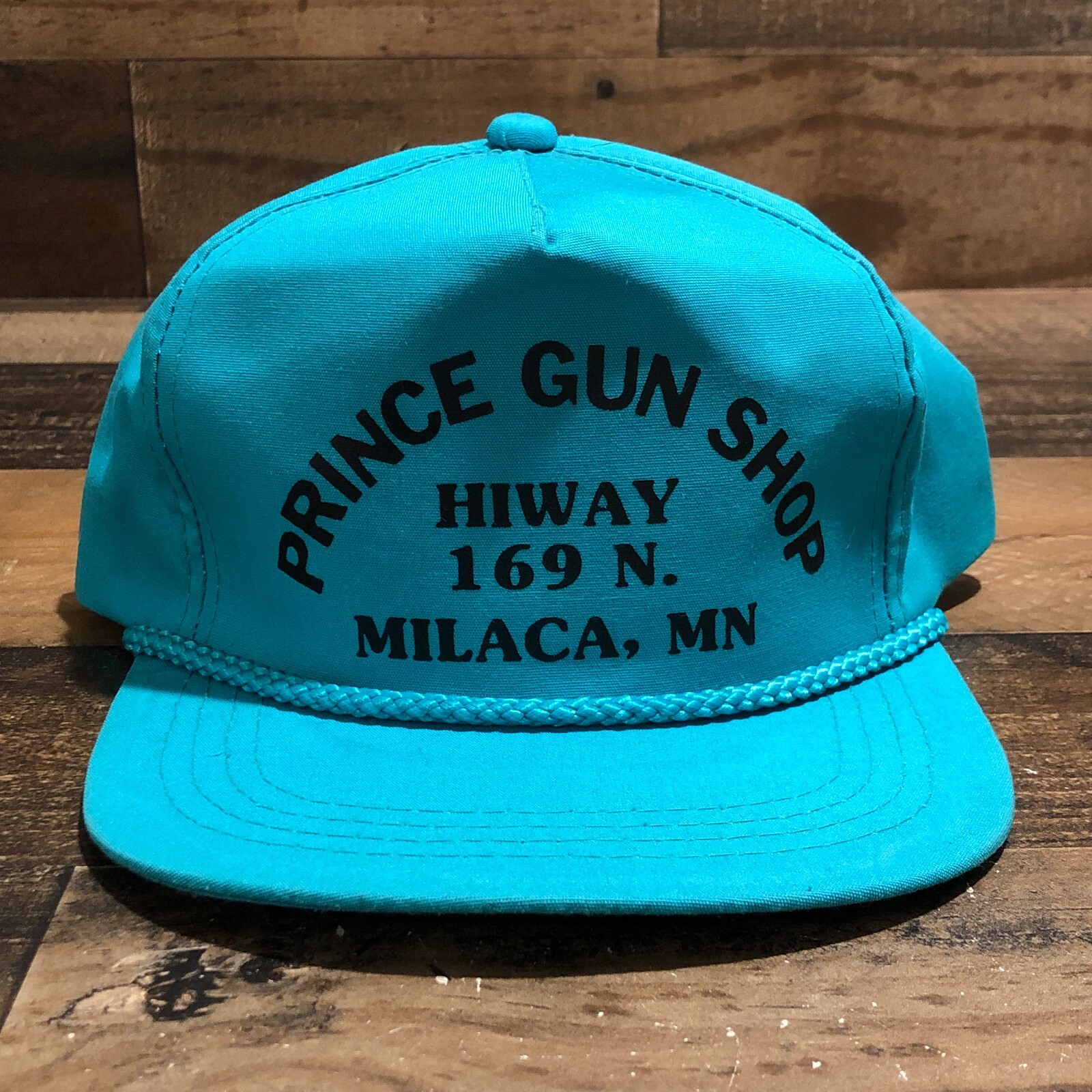 This vintage Prince Gun Shop snapback hat/cap is a pre-owned piece listed in the Clothing, Shoes & Accessories category. It features a teal blue color and references Milaca, Minnesota, with a 90s-style look. Exact materials, sizing, and additional details are not provided—check the listing for details. The item is priced at $30.88 USD and ships with free shipping. Review the photos and description in the listing for condition notes, fit, and any signs of wear typical of pre-owned vintage headwear.